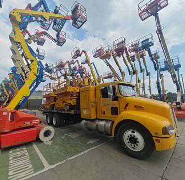 Renta de plataformas tipo tijera perfectas para elevación vertical en espacios de trabajo, ofreciendo estabilidad, seguridad y eficiencia en labores de mantenimiento e instalación.